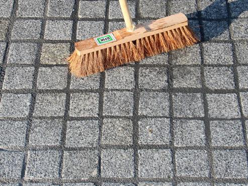 Harjamine/puhastamine: eemaldage liigse mördi jäägid koheselt, kergelt pinda veega niisutades, ilma vuuke välja pesemata. Puhastamisel liikuge alade suunas, mida pole veel vuugitud, ja puhastage ka sillutuspind. Eemaldage lõplik mördi jääk niiske kookoskiust harjaga.